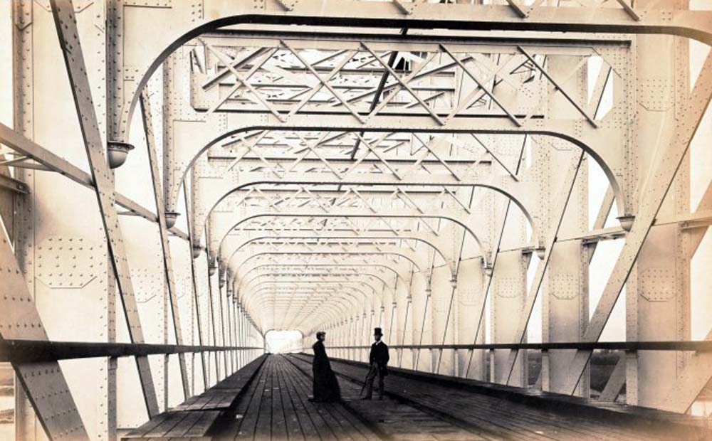 De eerste brug was berekend op twee sporen, hoewel de Staatslijn oorspronkelijk maar enkelsporig was. Het spoor lag daarom ook in het midden van de brug. Het spoor werd opzij geschoven tijdens de Tweede Wereldoorlog. De bezetters hadden vervolgens houten planken neergelegd, opdat er ook met wegvoertuigen overheen gereden kon worden. Hoewel de Duitse bezetters wel explosieven hadden aangebracht bij en op de brug zijn deze niet, zoals bij veel andere bruggen tijdens de Duitse aftocht, tot ontploffing gebracht. Zodoende was de brug bij Culemborg één van de weinige grote Nederlandse bruggen die de Tweede Wereldoorlog nagenoeg ongeschonden hebben overleefd. In 1983 is de brug gesloopt en vervangen door een moderne stalen boogbrug, met aanbruggen van beton. Een klein deel van de oorspronkelijke brug is als monument naast de nieuwe brug geplaatst.