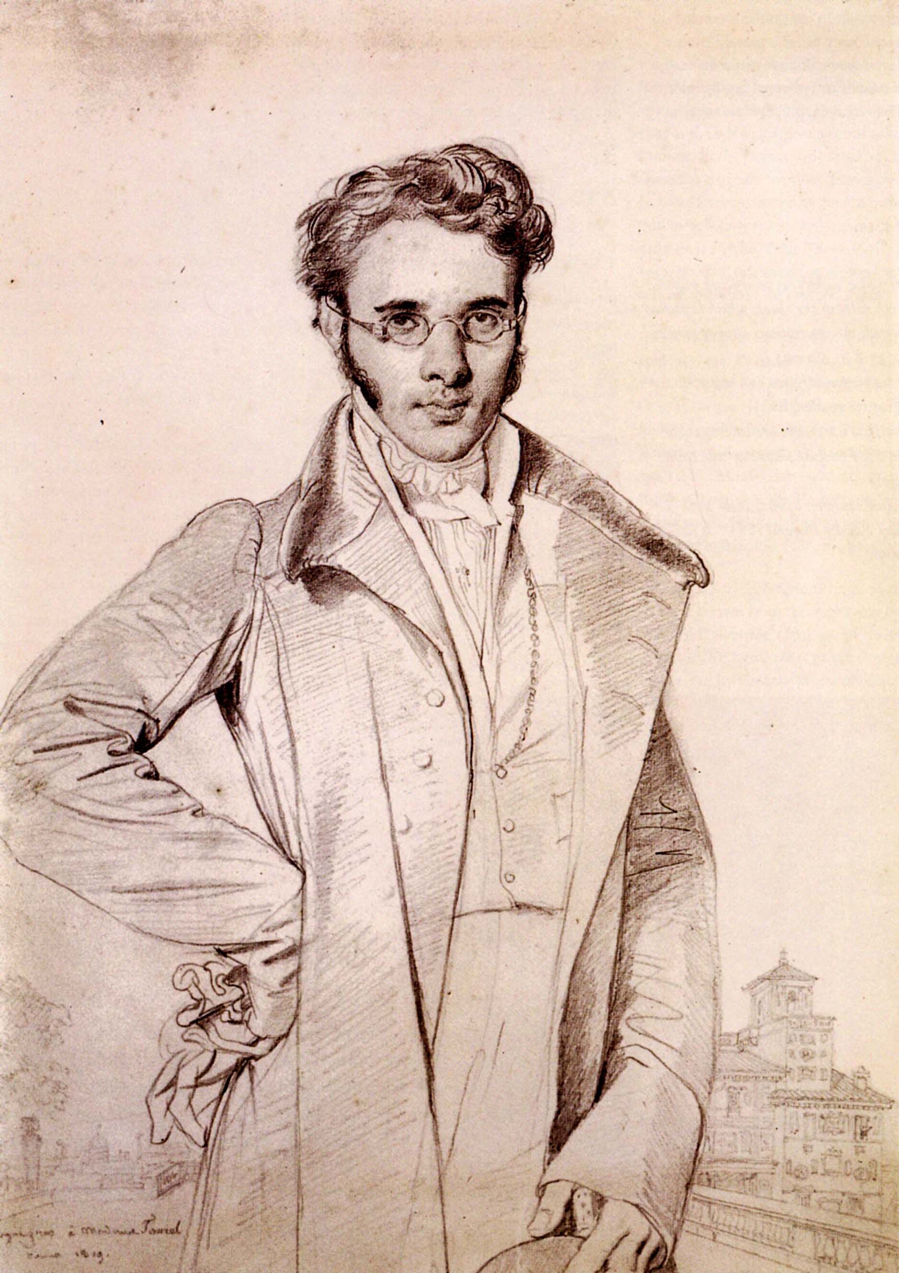 Boven: André Benoit Barreau Taurel in Rome, tekening door Jean Auguste Dominique Ingres