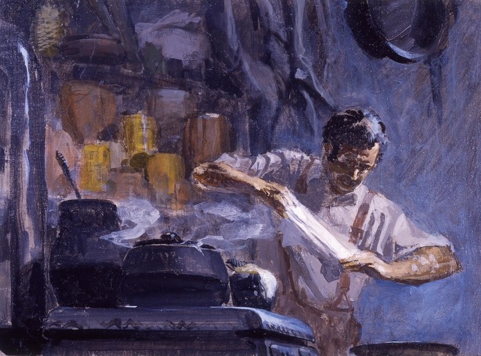 Charles Goodyear aan het experimenteren, naar een schilderij van Stanley Meltzoff