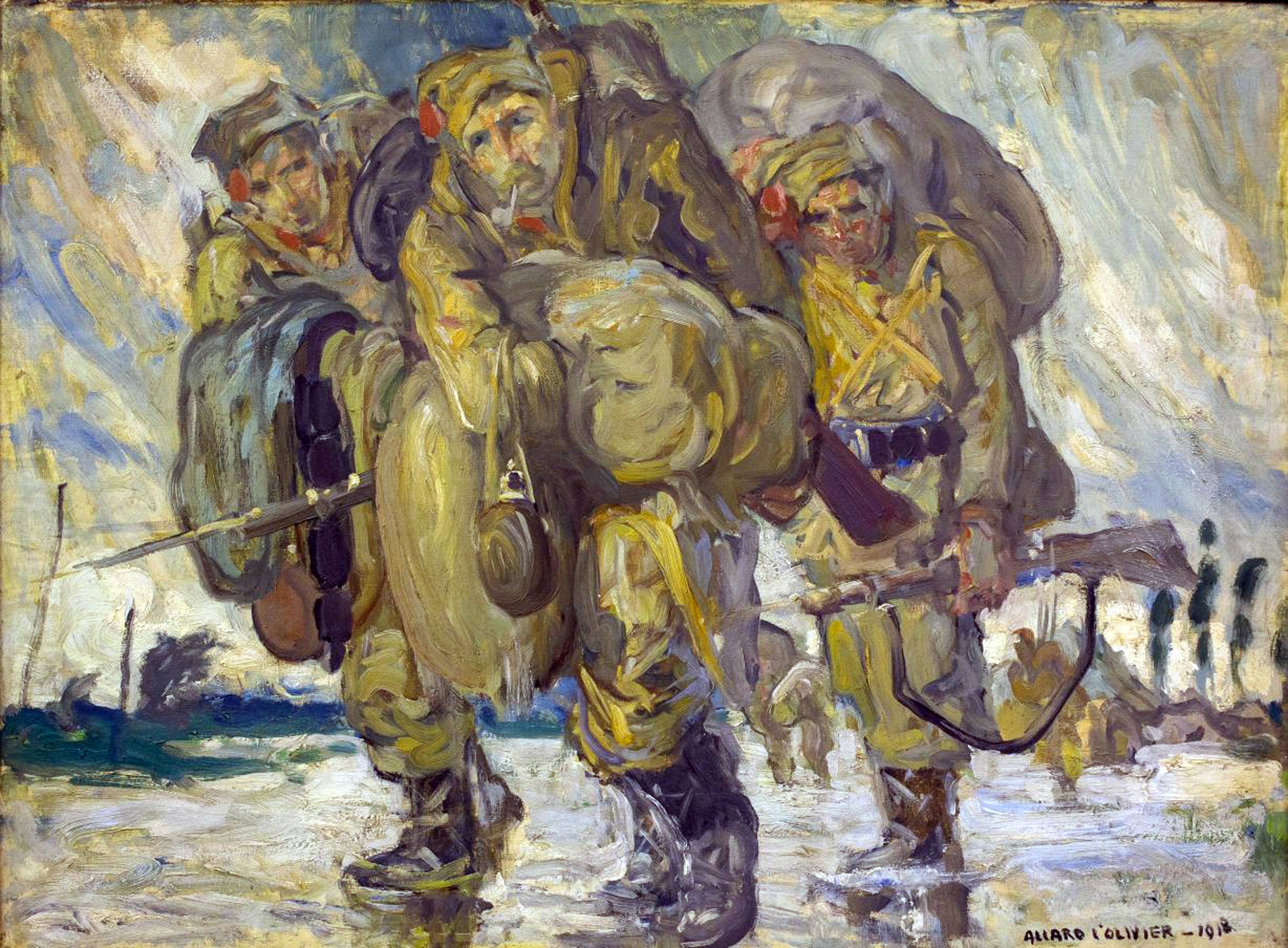Fernand Allard l’Olivier, eigenlijk Florent-Joseph-Fernand Allard (Doornik, 12 juli 1883 – Yanongé, Belgisch-Kongo, 9 juni 1933) was een Belgisch kunstschilder. Hij maakte vooral naam met zijn schilderijen van Belgisch-Kongo. Fernand Allard l’Olivier was de zoon van de graveur en aquarellist Charles Allard. Al op jonge leeftijd trok hij naar Parijs om kunstschilder te worden. Hij trad in de leer bij William Bouguereau en werkte in de ateliers van Jean-Paul Laurens en Jules Adler. Hij schilderde in een academische, realistische stijl, maar maakte ook veel decoratieve werken, vooral in opdracht. Hij had een atelier in Montmartre. In 1912 huwde hij Juliette Rossignol, met wie hij twee kinderen kreeg. Tijdens de Eerste Wereldoorlog keerde Allard l’Olivier terug naar België en werd frontschilder in het leger. Daar schilderde hij onder meer onderstaand waterverfschilderij van uitrustende soldaten en in 1918 een olieverfschilderij met een groep soldaten die door het ondergelopen land banjert.