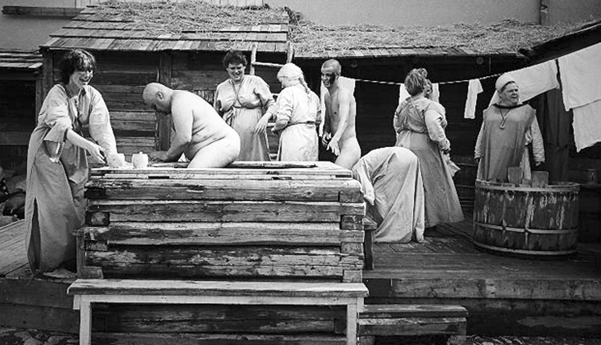 Twee sfeerbeelden uit de Finse saunacultuur, rond de eeuwwisseling.