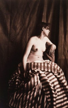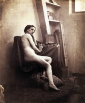In 1839 presenteerde Louis Daguerre het eerste praktische proces van fotografie en zijn daguerreotypieën hadden een ongelooflijke kwaliteit en detail, bovendien vervaagden ze niet als ze oud werden. De nieuwe technologie ging niet ongemerkt voorbij aan kunstenaars die belust waren op nieuwe manieren om de onverpakte vrouwelijke vorm uit te beelden. Traditioneel was een académie een naaktstudie door een schilder om de vrouwelijke (of mannelijke) vorm te leren schilderen. Zo’n werk kon alleen verkocht worden als het bij de overheid geregistreerd en goedgekeurd was. Al snel werden naaktfoto’s geregistreerd als académie en verkocht als hulpmiddel voor schilders. De foto hiernaast uit 1850 is hiervan een mooi voorbeeld. Maar het realisme van de foto in tegenstelling tot het idealisme van een schilderij maakte veel van deze foto’s intrinsiek erotisch. In ‘Nude photography, 1840–1920′ merkt Peter Marshall op: ‘In het heersende zedelijke klimaat van de tijd waarin de fotografie werd uitgevonden was de enige officieel goedgekeurde toepassing van de fotografie van het lichaam te dienen als model voor studies door schilders. Veel van de bewaard gebleven voorbeelden van daguerreotypieën behoren duidelijk niet tot dat genre, maar hebben iets uitgesproken sensueels, wat impliceert dat ze bedoeld waren als erotische of pornografische beelden.’