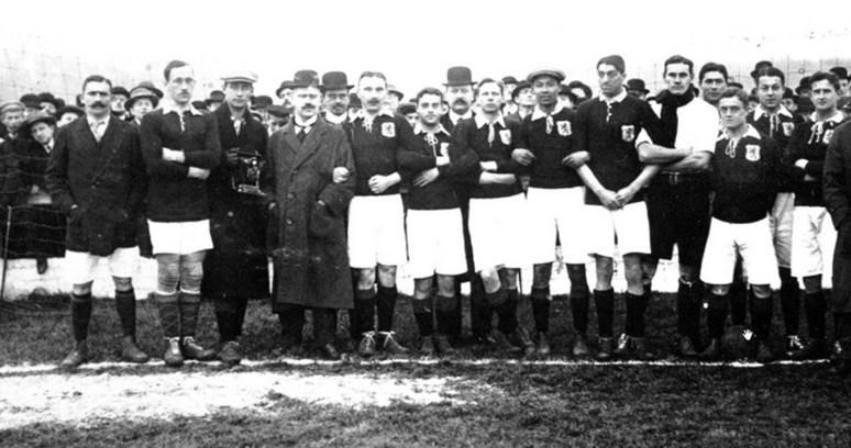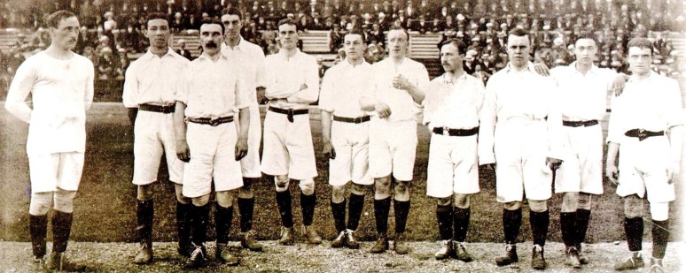 Het nationale voetbalelftal in 1912, met tweede van links Dirk Lotsy.