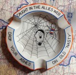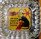 Net zo hard als de cultus in Duitsland opkwam, ontstond eind dertiger jaren en helemaal in de oorlogsjaren in Engeland en de verenigde Staten een soort anti-Hitlercultus, met een paar opvallende parallellen. Eerder hier al eens gewezen op het Hitler Pincushion dat vanaf 1941) in de handel was. Er waren echter talloze andere gebruiksvoorwerpen waarin de haat ten opzichte van Adolf Hitler en in mindere mate de Japanse keizer tot uiting kwam. Zoals asbakken, in alle soorten en maten.