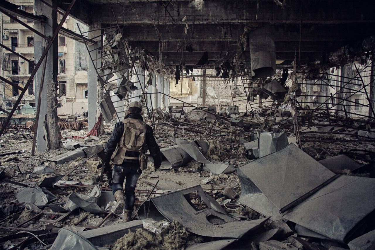 Daams heeft vooral in Aleppo gewerkt, waar hij aansluiting kon krijgen bij een rebellengroep die als streven heeft Syrië om te vormen naar een democratie volgens de Westerse normen. Daar heeft hij bescherming gevonden in een inmiddels geheel plat gebombardeerde en verlaten stad. Over de kinderen die hij in deze erbarmelijke omstandigheden fotografeerde zei hij maanden geleden al dat hij zich afvraagt of ze nog steeds in leven zijn. Op 26 april jl. heb ik aan deze kinderen al een blog besteed. Vanwege de actualiteit van de vluchtelingenproblematiek vandaag een aanvulling, beelden van de uitzichtloze situatie die honderdduizenden ontvluchten.