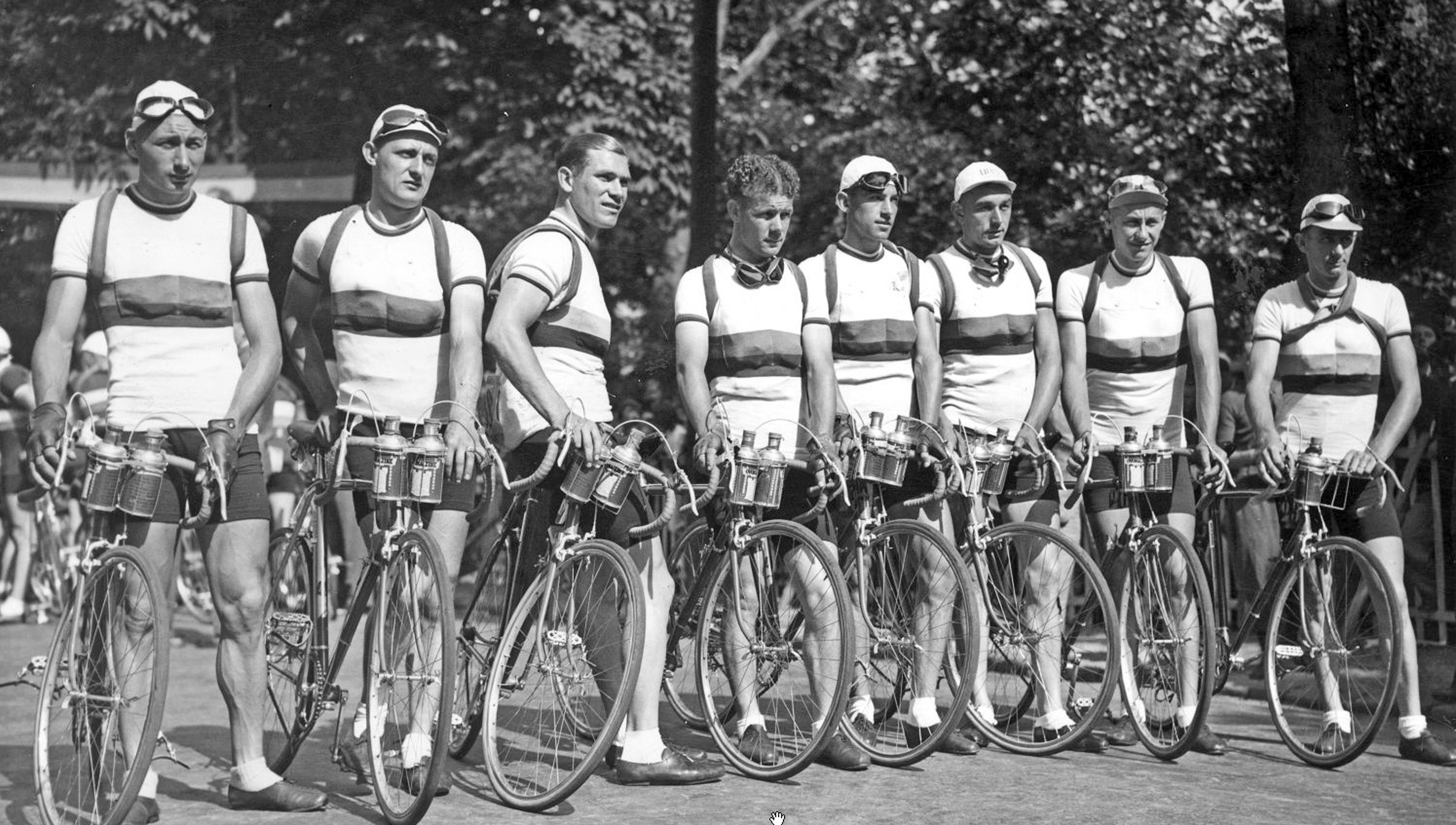 De Nederlandse ploeg voor de Tour 1939, vlnr Huub Sijen, André de Korver, Jan Gommers, Jef Dominicus,