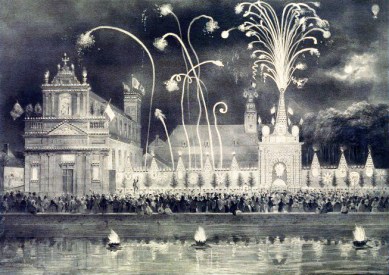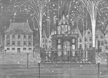 Uit al de monden van de knechten en meiden te gelijk ging de bewondering op achter de laurieren, nu ’t eensklaps vlammende Bengaalsche licht den tuin ontstak, en, rooie verwildering, de bezitting rondom deed verschijnen, een inelkaarstorting vol bressen en belemmeringen; zoo bij een nachtbrand in wintertijd, alles berijpt gloeit in den schijn der vlammen, straalden er overal ruigten en staketsels van bevroren vuur, rondom het licht dat veelvoud offerlijk rookte, wijd-rond het piedestal van den zonnewijzer.
