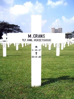 Kort na de overgave van Japan vertrok Crans naar Nederlands-Indië. Op 20 november 1945 werd hij benoemd tot aspirant-controleur en tweede luitenant bij de Netherlands Indies Civil Administration (NICA), een onderdeel van het Koninklijk Nederlandsch-Indisch Leger (KNIL) met bestemming Timor. Op 21 november zou hij daarheen vertrekken, maar bij een schietpartij in Batavië een dag voor zijn afvaart raaktij hij zwaar gewond. Crans overleed op 23 november 1945 in Batavia (Jakarta) en werd begraven op het Nederlandse ereveld Menteng Pulo in Jakarta (vak II, nummer 321). Bij Koninklijk Besluit no. 17 van 7 mei 1946 werd Crans postuum het Verzetskruis 1940-1945 toegekend, ‘voor onder gevaarlijke omstandigheden betoonden moed, inititatief, volharding, offervaardigheid en toewijding in den strijd tegen den overweldiger van de Nederlandsche onafhankelijkheid en voor het behoud van de geestelijke vrijheid, daarbij in hem eerende een der uitingsvormen van het verzet, dat in zijn veelzijdige activiteit van 15 Mei 1940 tot 5 Mei 1945 in stijgende mate den vijand heeft geschaad en op onvergetelijke wijze tot de bevrijding van het Vaderland heeft bijgedragen’.