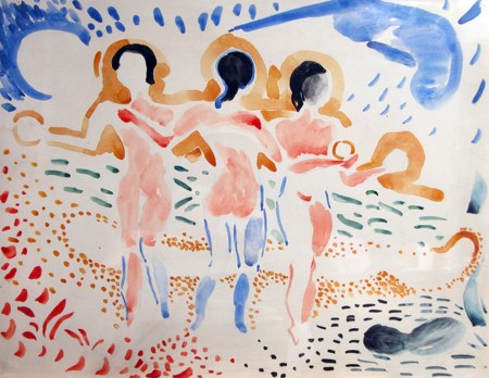 André Derain (Chatou, 10 juni 1880 – Garches, 8 september 1954) was een Frans kunstschilder en beeldhouwer, die ook actief was als sieraadontwerper. Derain volgde de kunstacademie, waar hij bevriend raakte met Henri Matisse. In 1900 huurde hij een studio met Maurice de Vlaminck en begon hij met het schilderen van zijn eerste landschappen. Matisse, Derain en De Vlaminck worden beschouwd als de grondleggers van het fauvisme. Derain werd bekend met zijn landschappen en, in zijn Londense periode, met zijn bruggen over de Theems en zijn schilderingen van Hyde Park. Nadat hij Picasso had leren kennen, kregen zijn landschappen gaandeweg een geometrische abstractie. Later maakte hij ook stillevens. Na de Eerste Wereldoorlog schilderde hij veel landschappen in Zuid-Frankrijk, daartoe geïnspireerd door Paul Cézanne. Derain illustreerde daarnaast met houtsneden boeken van Guillaume Apollinaire, Max Jacob en André Breton. Vanaf 1907 vervaardigde hij sculpturen uit steen. Derain schilderde eveneens theaterdecors. Dit na zijn grote succes in 1919 met zijn decors voor het ballet ‘La Boutique fantasque’ van Serge Diaghilev. In 1920 won Derain de prestigieuze Carnegieprijs en lag de wereld voor hem open. Hij exposeerde onder meer in Berlijn, Düsseldorf, Frankfurt, Londen en New York. In 1941 accepteerde Derain een uitnodiging van Duitsland voor een bezoek aan dat land, wat door de Duitse oorlogspropaganda werd uitgebuit. In 1944 sloeg hij een uitnodiging af van de regering-Pétain tot benoeming als directeur van de École des Beaux Arts. Na de bevrijding werd Derain in Frankrijk gezien als collaborateur en viel hij in ongenade. Zijn werk werd niet langer op exposities getoond, wat zijn relatieve onbekendheid verklaart. Zijn werken brengen tegenwoordig echter vele miljoenen euro’s op.