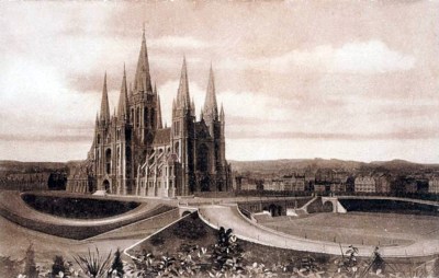 Vanaf 1920 werd zijn tomeloze energie opgeslorpt door één reusachtig project: de Nationale Basiliek van het Heilig Hart in Koekelberg. Het was de droom van het Belgische koninklijke huis om de onbebouwde hoogvlakte van Koekelberg om te bouwen tot een ‘koninklijke wijk’. Rond 1860 werden onder koning Leopold I al de eerste schetsen gemaakt en plannen voor de aanleg ontwikkeld. Vanaf 1880 wijzigde Leopold II de plannen. Hij wilde dit deel van Brussel urbaniseren naar het model van de ‘Sorbonne-wijk’ in Parijs, waarbij een pantheon ter ere van de groten van het land en een nationale begraafplaats de belangrijkste elementen moesten worden. Hij krijgt hiervoor maar weinig steun en opnieuw worden de plannen omgegooid. Met het oog op de 75ste verjaardag van de onafhankelijkheid van het land overweegt hij de oprichting van een nationaal heiligdom gewijd aan het Heilig Hart, dat de vergelijking met de basiliek Sacré Cœur van Montmartre kan doorstaan. Door Parijs gefascineerd wil de koning in Koekelberg een kerk laten bouwen te midden van een werkelijke ‘ster’ van lanen en een eigen ‘Champs-Elysées’ die naar de hoofdstad leidt. Op 12 oktober 1905 legt Koning Leopold II de eerste steen van dit gebouw. Het eerste ontwerp van architect Pierre Langerock (1903) voorzag een pralerige tempel in gotische stijl van het Franse type uit de twaalfde eeuw. Door de Eerste Wereldoorlog moest de bouw echter worden gestaakt, maar werd al wel direct een hogere betekenis aan de af te bouwen basiliek gegeven, namelijk een nationale basiliek als bekroning van de wederopbouw van België. In 1919 werd gezien de wankele financiële positie van het koninkrijk afgezien van verdere uitvoering van het project-Langerock en werd geopteerd voor een