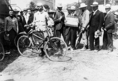 concurrerende renners iets van doen hadden met die ongelukkige valpartij. De winnaar was de Zwitser Lucien Lesna, die in 1901 en 1902 ook Parijs-Roubaix op zijn naam had geschreven. Hierover het volgende verslag: ‘Om zijn rivaal Maurice Garin te overtroeven trainde Lucien Lesna 6.000 km en hij zocht toen zelfs de warmere oorden van Tunesia en Algeria op om dit goed te kunnen doen. Als een uur voor de start het nieuws valt dat Garin forfait geeft , is Lesna razend . Hij kalmeert zich door nog een zestal rauwe eieren te slikken en drie kopjes pure vloeibare chocolade. Hij is in topvorm, maar zal Garin niet kunnen belachelijk maken. De wielercracks startten om 3u00 in de nacht op de Esplanade des Quinquonces,