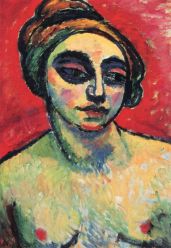 Alexej von Jawlensky (Torzjok Rusland, 25 maart 1864 of 1865 – Wiesbaden, 15 maart 1941) was een Russisch-Duits expressionistisch schilder. Hij kreeg in Sint-Petersburg in 1892 de aanbeveling zich bij zijn kunstopleiding te richten op de schilderkunst en dan les te gaan volgen bij de vermogende Barones Marianne von Werefkin (1860-1938), die op dat moment in Rusland al behoorlijk wat succes had en de bijnaam ‘de Russische Rembrandt’ had gekregen. In die periode schilderde Von Jawlensky realistische werk, maar bijna alle werken van hem uit die periode zijn verloren gegaan. In 1896 vertrokken hij, Marianne von Werefkin en hun elfjarig dienstmeisje naar München in Duitsland, waar hij bevriend raakte met Wassily Kandinsky. In 1902 ging hij meer aandacht krijgen voor de avant-garde in Parijs, die hij in 1903 ook bezoekt. Hij gaat steeds meer stillevens en landschappen in neo-impressionistische stijl schilderen. In de jaren 1904-1906 concentreerde hij zich sterk op het werk van Vincent van Gogh, wat tot uiting kwam in het werk Das Waldhäuschen. Enkele jaren later richtten hij en zijn vrouw in de ‘rosafarbenen Salon’ van Werefkin de Brüderschaft von Sankt Lukas op, gebaseerd op de werkwijze van de aloude gilden. Het gilde zou geen lang leven beschoren zijn, maar wist toch in de jaren 1909-1911 drie invloedrijke tentoonstellingen te organiseren. In dezelfde salon van Werefkin werd rond Kerstmis 1908 de Neue Künstlerverein München opgericht, waarvan behalve uiteraard het echtpaar Von Jawlensky-Von Werefkin ook Adolf Erbslöh, Oscar Wittenstein, Gabriële Münter en Wassily Kandinsky waren. Het bleek opnieuw de opstart te zijn naar een andere vereniging. Al na een jaar verliet hij deze vereniging en startte met Franz Marc de nieuwe kunstenaarsgroep Der Blaue Reiter, die een toonaangevende club in de Duitse schildergeschiedenis zou innemen. In 1914 bij het uitbreken van de Eerste Wereldoorlog hield de club op te bestaan. Elk van de kunstenaars ging zijn/haar eigen weg, voortdurend werkend aan een indrukwekkend artistiek oeuvre.