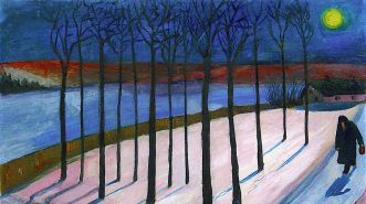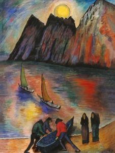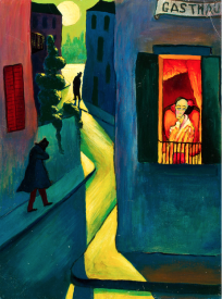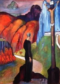 Marianne von Werefkin (Toela, 10 september 1860 – Ascona, 6 februari 1938) was een Russisch expressionistische schilder; haar oorspronkelijke naam was Marianna Vladimirovna Verjovkina. Ze stamde uit een rijke adellijke familie; haar vader was de commandant van het regiment van Jekaterinenburg. Toen zij acht jaar oud was, verhuisde de familie naar een landgoed in Litouwen. Haar moeder was schilderes van iconen en moedigde haar dochter aan op het artistieke vlak. Na gedegen privé-onderwijs in tekenen en schilderen ging ze in 1883 naar de Moskouse kunstschool. In 1886 verhuisde het gezin opnieuw, ditmaal naar St. Petersburg. Daar kreeg Marianne tien jaar lang privé-lessen bij de beroemde Russische realistische kunstschilder Ilja Repin (1844 – 1930). In 1888 schoot ze zichzelf bij de jacht per ongeluk in haar rechterhand, waardoor ze die hand hand nooit meer optimaal heeft kunnen gebruiken. Bij Repin ontmoette ze in 1891 de kunstschilder Alexej von Jawlensky, juist op het moment dat ze haar eerste successen kende als kunstschilder. Vanwege haar realistische schilderijen, met veel portretten op groot formaat tegen een donkere achtergrond, kreeg ze de bijnaam ‘de Russische Rembrandt’. Marianne raakte gefascineerd door de drie jaar jongere Jawlensky. Samen met hem en de elfjarige huishoudster Helene Nesnakomoff verlaat zij in 1896 haar vaderland. Het stel vestigde zich in München, waar dan een groep Russische kunstenaars is neergestreken. Het echtpaar vond direct aansluiting bij deze kunstenaarskolonie. Jawlensky begon onder invloed van zijn Franse tijdgenoten al snel met krachtige penseelstreken en felle kleuren te schilderen, waarbij zijn omgeving een belangrijk onderwerp werd. Zijn kennismaking met de landschappen van Van Gogh vormde een langdurige bron van inspiratie. Werefkin geeft negen jaar lang haar schilderscarrière geeft op om zich volledig wijden aan die van Jawlensky. Mogelijk vond ze dat hij over meer talent beschikte dan zijzelf, maar wellicht speelde ook mee dat ze vreesde dat men haar werk als vrouwelijke kunstenaar niet op waarde zou weten te schatten. Ook kan een rol hebben gespeeld dat haar rechterkant een tijdlang schilderen niet echt mogelijk maakte.