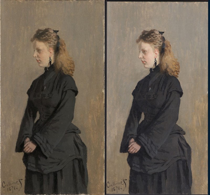 In Zaandam schilderde Monet alleen maar riviergezichten aan de Zaan, vaak met molens of kleine zeilboten, een aantal havengezichten, met één uitzondering: een portret van juffrouw Guurtje van de Stadt. Guurtje (20 oktober 1854 – 5 januari 1936) was op dat moment bijna zeventien jaar oud. Ze is geportretteerd in rouwkleding, want kort daarvoor was haar vader Jan van de Stadt overleden. De familie Van de Stadt behoorde tot de rijkere inwoners van Zaandam (men bezat een grote houthandel, scheepswerven, een rederij en een aantal molens) en woonde in 1871 aan de Zuiddijk. Blijkbaar is het contact tussen de Monet en de familie Van de Stadt tot stand gekomen doordat Camille Monet in Zaandam Franse conversatieles gaf. Het portret bleef lange tijd in familiebezit, maar is nu in het bezit van het Rijksmuseum Kröller-Müller. In het voorjaar en de zomer van 2018 is het schilderij Portret van Mej. Guurtje van de Stadt gerestaureerd, mogelijk gemaakt door een anonieme Boeker van het Helene Kröller-Müller Fonds. Het leverde een enorme facelift van het schilderij op. De sterk vergeelde en glanzende vernis die de oorspronkelijke koelere kleuren van het schilderij verdoezelde werden verwijderd. Vooral in de achtergrond van het schilderij is het verschil zichtbaar. Deze achtergrond is opgebouwd in twee lagen. De eerste laag is een wat transparant en open geschilderde onderlaag in een warmere tint, waarbij de grondering doorschemert. De tweede laag heeft een hoger dekkend vermogen en is dichter geschilderd, in een meer grijzige tint. Het contrast tussen beide lagen is na vernisafname duidelijker. Ook de subtiele kleurnuances in de donkere kleding zijn na het verwijderen van de vergeelde vernislaag beter zichtbaar geworden.