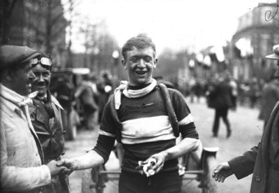 Julien Delbecque (Harelbeke, 1 september 1903 – Kortrijk, 22 oktober 1977) was een Belgisch wielrenner, die de bijnaam ‘Potter’ had. De betekenis en/of oorsprong daarvan is voor mij in nevelen gehuld. Ook verder is deze Delbecque geheel in de vergetelheid geraakt, wat wellicht te wijten is aan de korte carrière van de man. Sommige overzichten lopen van 1923 tot 1932, maar in werkelijkheid was het in 1928 al wel gedaan met zijn wielerloopbaan. Toch heeft Julien een aantal aansprekende resultaten. In 1925 won hij Ronde van Vlaanderen, in 1926 was hij de winnaar van Parijs-Roubaix en zowel in 1926 en 1927 werd hij tweede op het Belgisch kampioenschap wielrennen. Dat zijn toch wel resultaten die iemand in het collectieve Belgische wielergeheugen zouden moeten plaatsen, maar dat is blijkbaar niet het geval. Behalve een paar fraaie foto’s van hem, trof ik slechts één citaat van Karel van Wijnendaele, die in 1943 in Het Rijke Vlaamsche Wielerleven hem memoreerde in het artikel ‘Een jaar met storende gebeurtenissen’: