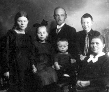 Willy Kruyt, zijn vrouw Truus Hogerzeil en hun vier kinderen. Rechtsboven Nico Kruyt.