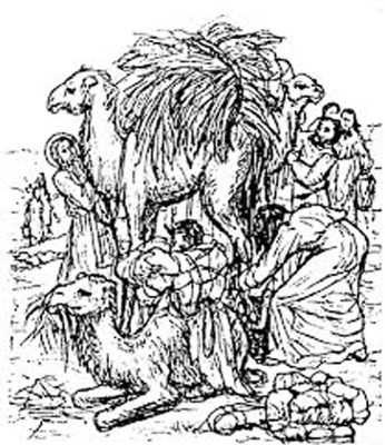 “Wat is er, Emilia, mijn kind?”, riep haar vader haar toe, door haar plotselinge beweging uit zijn overpeinzingen opgeschrikt. “0, Vader, Vader!” riep zij hem toe, “ik geloof, dat ik tussen de bergen het gerinkel hoor van kameelbellen!”