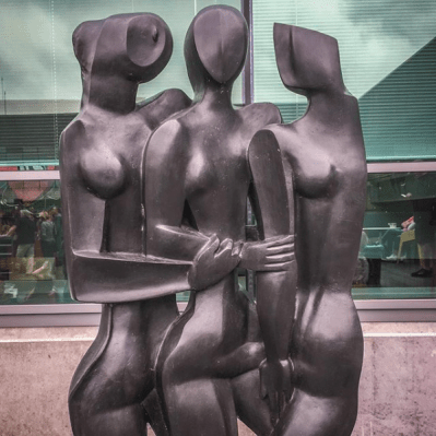 In Nederland bevindt zich, naast het overbekende werk van hem in Rotterdam, werk van Zadkine in musea in Zwolle (De Fundatie), Eindhoven (Van Abbemuseum), Scheveningen (Museum Beelden aan Zee), Otterloo (Kröller-Müller Museum), Amstelveen (Museum Jan van der Togt) en Apeldoorn. De Apeldoornse burgemeester Des Tombe, burgemeester van de stad van 1946 tot 1972), liet in 1963 voor een bedrag van (omgerekend) 30.000 euro het beeld De Drie Gratiën kopen. Het beeld van de drie dochters van Zeus, die respectievelijk schoonheid, vreugde en scheppingskracht brengen, werd in 1964 geplaatst aan de Moeflonstraat gestaan, bij een klein stadspark. Daar bleef het staan tot in 2008 een aantal vandalen het beeld van de sokkel trokken. Toen werd de tijd rijp geacht het kostbare beeld te beveiligen tegen lieden de de waarde van kunst niet inzien en beelden van wereldfaam graag voor de prijs van brons stelen. De Drie Gratiën werden naar binnen gebracht en staat sindsdien in de binnentuin van museum CODA, filmhuis Gigant en het kunstencentrum Markant. Op de plaats waar het beeld eerder in de publieke ruimte stond, werd in 2008 een nieuw beeld geplaatst: Trittai van de Apeldoornse kunstenaar Hieke Luik (1958). Het is ook geïnspireerd op het mythologische verhaal van De Drie Gratiën.