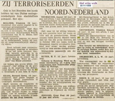 en Bernard Georg Haase (Altleis Dld., 1910), SS Sturmbannführer en ‘Aussenstelleleiter’ in Groningen. Haase werd in juni 1949 ter dood veroordeeld. Zijn straf werd in 1952 omgezet in levenslang. In 1959 werd hij vrijgelaten.