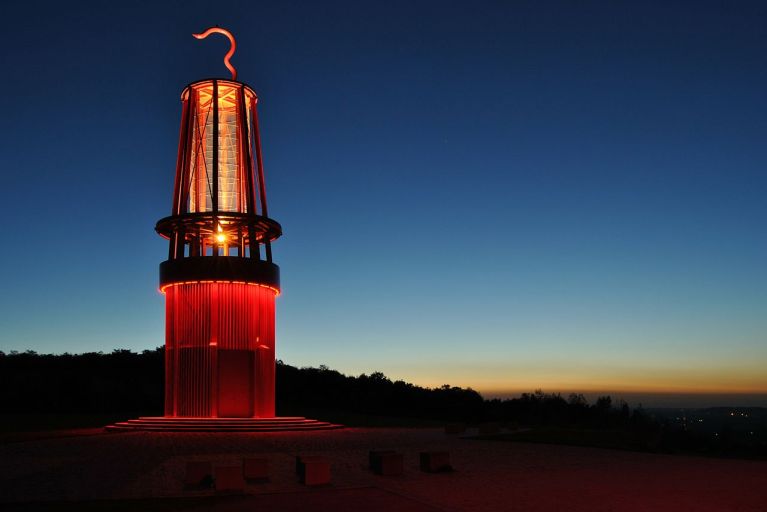 Otto Piene studeerde aanvankelijk filosofie in München en Düsseldorf, waar hij later ook op de Kunstacademie zou doceren. Hij maakte onder meer Raster-bilde in een soort van stenciltechniek en rook- en vuurbeelden waarvoor hij rook en roet liet neerslaan op bladen papier of op het linnen liet inschroeien. Na 1960 werkte hij ook met laserlicht, heteluchtballonnen en met luchtballetten. In 1962 richtte hij samen met Heinz Mack en Günther Uecker een ‘lichtsalon’ in op de tentoonstelling ‘Nul’ in het Stedelijk Museum te Amsterdam. Piene zocht steeds sterker en grootschaliger de kunst in de ruimte te realiseren – in mega-kunstprojecten – en is als zodanig als een voorloper van de ‘happening’ te beschouwen. Een van zijn ruimtelijke lichtprojecten betreft Geleucht mit Lichtinstallation dat op Halde Rheinpreußen bij het plaatsje Moers te vinden is. Het maakt onderdeel uit van de Route der Industriekultur, een fenomenaal Duits industrieel netwerk van 52 toeristische bezienswaardigheden in het Ruhrgebied (24 ankerpunten waarvan drie bezoekerscentra zijn, 15 uitkijkpunten in het industrielandschap en 13 arbeiderswijken). De Halde Rheinpreußen is de afvalberg van zeventig meter hoog van de oude mijn Zeche Rheinpreußen die in 1963 werd gesloten.Met haar negen mijnschachten, haar cokesfabrieken en chemische industrie was Rheinpreußen altijd het grote prestigeproject geweest voor de mijnindustrie in Niederrhein. Er werden hier in de loop der eeuwen miljoenen tonnen steenkool naar boven gehaald tot het moment dat in 1990 de laatste schacht werd gesloten. Als ’s nachts de fabrieken in vol bedrijf waren, werd de lucht in het hele gebied rood gekleurd, alsof hier de zon voor een tweede keer onderging. In 1999 kwam Otto Piene met het idee een kunstwerk van een grote mijnlamp met de naam Geleucht boven op die afvalhoop te plaatsen, wat perfect aansloot bij het feit dat lucht, vuur en licht de centrale elementen in zijn kunstwerken waren. De knalrode lantaarn zette als het ware de afvalberg opnieuw in brand, als lava die na een vulkaanuitbarsting een bergwand afglijdt. Tussen 2005 en 2006 werd dat bouwwerk uitgevoerd en op 17 december 2007 officieel in gebruik genomen. Sindsdien brandt de lamp elke nacht. Het kunstwerk, een herinneringsmonument van de teloorgegane mijnindustrie in het Ruhrgebied, is via een trap voor bezoekers te bereiken.