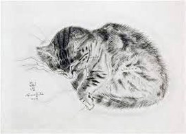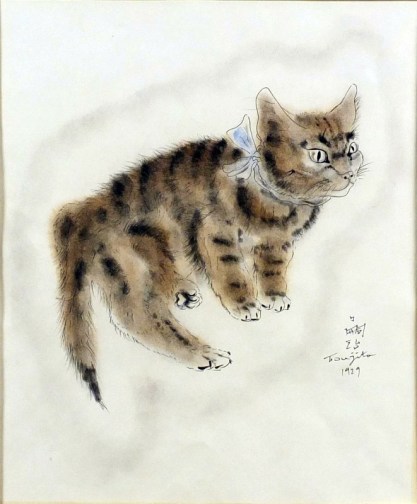 De grote kentering kwam in 1931. Hij scheidde dat jaar van Lucie Badoul, die een einde maakte aan de driehoeksverhouding met Robert Desnos door definitief voor de laatste te kiezen. Verder klopte de belastingdienst op de deur, want Foujita had vergeten over de reusachtige bedragen die hij de tien jaar daarvoor had geïncasseerd de verschuldigde belasting af te dragen. Samen met het jong modelletje Madeleine, die snel zijn vierde vrouw zou worden en bijna net zo snel zijn vierde ex-vrouw, nam hij de benen naar Zuid-Amerika, waar hij opnieuw veel succes had. In 1933 ging hij terug naar Japan om de officieel schilder van het keizerlijke leger te worden. De propagandaschilderijen die hij gedurende de oorlog maakte werden hem door kunstliefhebers vergeven. Een daarvan was de Amerikaanse generaal MacArthur, die zorgde dat hij in 1950 in het geheim kon terugkeren naar Frankrijk. Samen met Kimiyo, zijn Japanse vijfde echtgenote. Hij werkte nog achttien jaar in tamelijke anonimiteit verder. Wat lange tijd het meest van zijn werk bekend bleef zijn de vele kattentekeningen 0en – schilderijen die hij maakte. In 1930 waren twintig etsen van verschenen in zijn Book of Cats (1930, New York, uitgeverij Covici Friede), dat nog steeds hoog genoteerd staat in de lijst van zeldzame en dus dure boeken. Het wordt omschreven als ‘the most popular and desirable book on cats ever published’. Voor een zacht prijsje zijn echter herdrukken verkrijgbaar.