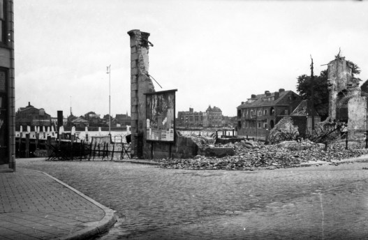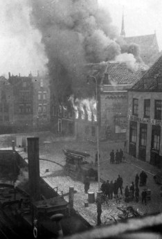 Woensdag 10 januari 1945 – De Dickes gestraft: Bij de geslaagde overval op de gevangenis wordt één Duitser gedood en raken er twee gewond. De Duitsers zijn woest en zinnen op wraak. Verzetsmensen werden in de laatste maanden van de bezetting regelmatig in het openbaar gefusilleerd, vaak op de plek van de aanslag. In Dordrecht loopt het anders. Dordrecht wordt collectief gestraft. Niemand mag vanaf 10 januari na 18.00 uur nog naar buiten. De Dickes ondergaan een ander lot. De Duitsers hebben de inboedel van het huis van de familie aan de Prinsenstraat 3 een dag eerder al in beslag genomen. Om 10.00 uur wordt door de Wehrmacht het bericht gegeven dat het pand van de Dickes door brand zal worden verwoest. De brandweer wordt ingeschakeld en rukt uit met groot materieel, de omliggende panden moeten nat gehouden worden om overslaan van de vlammen te voorkomen. Onder toezicht van de NSB-burgemeester (Van Houten) en de korpschef van de politie (Verlooij) steekt Ortskommandant Graf van Solms, om 10.55 uur zelf het pand in brand. Overigens niet nadat het bovenlicht van de winkeldeur, met een voorstelling van het Zeepaard, is verwijderd. Een kostbaar museumstuk, waarover de burgemeester zich eigenhandig ontfermt. De brand is enorm. Tot 14.20 uur grijpen de vlammen om zich heen. Dan pas begint de brandweer met blussen. De brand is zo hevig dat er ook een dag later nog moet worden nageblust. Wat er overblijft, wordt meegenomen: 250 kilo aan lood ‘afkomstig van goten en waterleidingen’. En de nog aanwezige brandkast. Wat daarmee is gebeurd, is niet bekend. De familie Dicke heeft maar weinig spullen kunnen redden. Een klein deel van de inboedel is vooraf in veiligheid gebracht. De rest is in beslag genomen of geroofd. Otto Dicke, die zelf veel tekeningen is kwijtgeraakt, vertelt later: ‘Op een adres vonden ze 300 boeken terug en op een ander adres de tafel en de canapé. De piano is ook teruggevonden. (…) Helemaal verknoeid, want daar hadden Duitsers bier in gegooid.” Veel moeite om verder te zoeken doet de familie niet. Dicke: ‘Het was ellendig werk.’