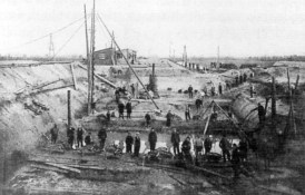In Nederland werd vanaf de jaren twintig van de twintigste een groot aantal werkverschaffingsprojecten opgezet. In de werkverschaffing kregen de werklozen geen echte baan aangeboden, maar werden ze door de overheid verplicht om in grote werkploegen ongeschoold werk uit te voeren, bijvoorbeeld het ontginnen van een hoogveengebied of het graven van kanalen. Dit alles gebeurde met schop, kruiwagen en kiepkar. De werkverschaffing was omstreden, en niet ten onrechte want het kan met een gerust hart worden beschouwd als een vorm van uitbuiting. Deze gedachtegang hoe met werklozen moet worden omgegaan, leeft overigens in liberale kringen in ons land onverdroten verder. Het werk binnen de werkverschaffingsprojecten was zwaar: de werkweken bedroegen gemiddeld zo’n 50 uur, de omstandigheden waren erbarmelijk slecht en het loon was maar net genoeg om met een gezin rond te komen. In 1939 verdiende iemand in de werkverschaffing 14 tot 17,50 gulden per week (omgerekend naar 2020 tussen de € 150,00 en € 200,00). Met de schop werd bijvoorbeeld in Nijmegen het Goffertpark en het NEC-stadion aangelegd, reden voor de Nijmeegse bevolking om het decennialang de ‘bloedkuul’ te noemen. Een naam die in de volksmond nog steeds niet is vergaten. In de nabijheid van de projecten liet de overheid vaak zogenoemde ‘werkkampen bouwen, waar de tewerkgestelden woonden. Alleen zaterdagavond en zondag konden zij thuis zijn.’ Veel van deze werkkampen werden overigens door de Duitsers in de eerste jaren van de bezetting gebruikt als Joodse werkkampen, tot ze in oktober in één nacht werden overgebracht naar Westerbork. Werklozen die weigerden of zij die het werk niet konden volhouden, kregen geen steun en waren aangewezen op de armenzorg, wat in die dagen als een blamage werd gezien. Veel werkverschaffingsprojecten werden uitgevoerd onder leiding van de Nederlandse Heidemaatschappij; zover mij bekend heeft de Heidemij nooit excuses aangeboden voor deze dwangarbeid maar maakt ze nog steeds goede sier met deze projecten.