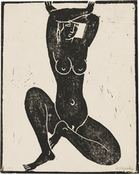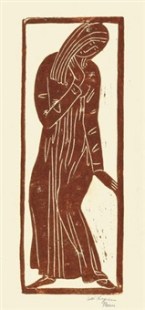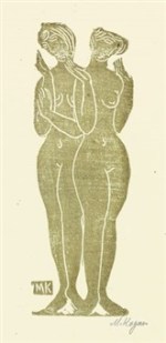 De thans vijftigjarige beeldhouwer Moïssy Kogan komt uit het wonderland der kunst, uit het Oosten: hij is geboren te Orguiew in Bessarabië. Hij behoort tot de begenadigde menschen, die een stuk klei van den grond opnemen en als zij het weer uit handen geven, is het bijna van zelf en als spelend een vorm, de vorm het nobel lichaam van een jong meisje geworden. Sinds tientallen jaren maakte hij kleine figuren en reliefs in z’n atelier te Parijs. De kleine, gemeubileerde hotelkamer, die hij vroeger jaren lang bewoonde en den stoel in het café du Dôme kon men in ernst niet zoo noemen; het was hoogstens een atelier voor den teekenaar. Maar daarna had hij een echt beeldhouwersatelier in de cité-Falguière, een afgelegen atelierwijk in Parijs. Kogan heeft veel technischen zin, hij werkt in velerlei aesthetisch materiaal, in steen en klei, in hout en metaal, met wol en zijde; hij maakt gesneden steenen en gemmen, weef- en borduurwerken, terra-cottas, munten en médailles. En daarnaast figuren of reliefs in hout, cement en brons, zwart- en roodkrijtteekeningen, houtsneden en droge naald-gravures: elke schoone stof beeft voor dezen kunstenaar en wordt door hem bezield met het leven der kunst, dat een goddelijk leven is. De weef- en borduurwerken die de meester maakte, behooren tot de beste versieringen van onzen tijd. Als allen wien het hierbij op edel materiaal en goede techniek aankwam, is hij hiervoor bij Aristide Maillol in de leer gegaan. Er zijn overigens betrekkelijk weinig werken van zijn hand. Veel is verloren gegaan. En hij werkt langzaam en geduldig als een Oosterling, wel wetend dat zonder tijd niets ontstaat dat den tijd zal weerstaan. Zijn werken zijn zeer verspreid, zij bevinden zich in musea en particuliere verzamelingen in Zwitserland (Zürich en Winterthür), Nederland, Parijs, Duitschland (Halle, Hamburg, Hagen, München). Het Haagsche gemeentemuseum voor moderne kunst verwierf reeds grafiek