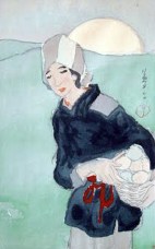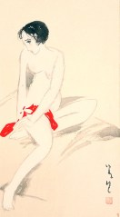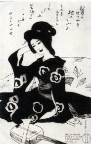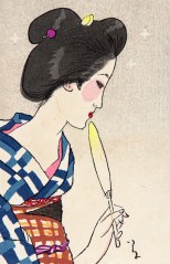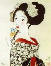 Yumeji Takehisa (Okayama, 16 september 1884 – Tokio, 1 september 1934) was een Japanse schilder die werkte in de Nihonga-stijl. Dat zijn Japanse schilderijen die vanaf ongeveer 1900 werden gemaakt, geheel in overeenstemming met de traditionele Japanse artistieke stijl, technieken en materialen, maar met duidelijke westerse invloeden. De kunstenaars gebruiken meer onderwerpen dan onder de traditionele Japanse schilderkunst gebruikelijk was en gebruikte ook realistische Westerse technieken, zoals perspectief en schaduwen. Tegelijkertijd wilden de kunstenaars zich afzetten tegen de grote verandering in de Meji-periode toen de westerse cultuur steeds dominanter werd en de schoonheid van de traditionele Japanse kunsten benadrukken. Takehisa werd geboren in het toenmalige Oku (dat momenteel Okayama heet), waar zijn geboortehuis nog steeds te bezichtigen is. Zijn vader werkte er als een brouwer van sake. Als jongeling wilde hij dichter worden, maar hij realiseerde zich al snel dat daar geen droog brood mee te verdienen was en stapte over op de schilderkunst. Van jongsaf was hij namelijk al een hartstochtelijk tekenaar, dus de overstap zal hem niet moeilijk zijn gevallen. Nu kende Japan verschillende traditionele scholen (zoals de Kanō-ha, Rinpa, Yamato-e en Maruyama Ōkyo), maar Takehisa volgde nooit een officiële opleiding aan een van die scholen en had ook nooit een schilder bij wie hij in de leer was. Hij maakte zich ook niet erg populair binnen de schildersgemeenschap door zich af te zetten tegen het pretentieuze concept ‘kunst’. Het gevolg was dat hij steeds slechte kritieken vanuit de gevestigde orde op zijn werk kreeg. Buiten dat kringetje kreeg zijn werk echter steeds meer populariteit, een waardering die tot op de huidige dag doorgaat. Hij geldt als een van de belangrijkste schilders, illustrators en grafici van de Taishōperiode (‘de periode van grote rechtschapenheid’), een periode in de Japanse geschiedenis van 30 juli 1912 tot 25 december 1926 toen keizer Yoshihito aan de macht was. Daarmee kwam een eind aan de Meiji-periode, die werd gemarkeerd door immense binnenlandse en overzeese investeringen en defensieve programma’s. Onder zijn bewind ging steeds meer politieke macht over naar het parlement en hun democratische partijen. Deze liberale periode eindigde met het overlijden van de keizer in 1926, waarna zijn zoon Hirohito (Tokio, 29 april 1901 – Tokio, 7 januari 1989) als 124e keizer van Japan aan de macht kwam.