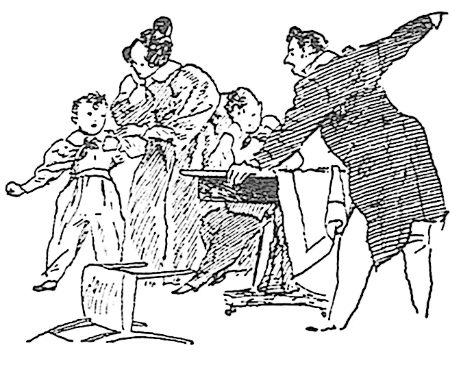 ‘Ik wil niet,’ gilde de jongen, den stoel omschoppende, die het dichtst bij stond.