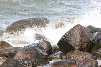 Het eerste doel vandaag is een rondreis rond het grote meer Saltbaek Vig. Volgens de kaart moet dan kunnen via een smal pad dat langs de oostkant van het meer naar het punt gaat waar meer en zee bijna bij elkaar komen. Via een dam zou dan naar de westelijke oever van het meer kunnen worden gereden. Aan het begin eerst genoten van een aantal indrukwekkende landschappen, gele velden waar het graan nog maar net vanaf is en dreigende wolkpartijen. En ineens een aantal koeien die bijna in zee liggen te herkauwen; een wolfachtige hond op de voorgrond. Iets verderop was de weg afgesloten, want het is blijkbaar grotendeels beschermd natuurgebied. Dus de weg terug om toch in het plaatsje Saltbaek uit te komen. Onderweg eerst langs het dorpje Sprangbro en een stop bij een van de prachtige witte kerkjes op het platteland, ditmaal in Tommerup. Mooi kerkje met zoals het hoort eeuwenoude muren langs de begraafplaats, vol mossen. Een geweldig onderhouden begraafplaats trouwens met tal van bloemen. De weg langs het kerkje ligt een stuk dieper, zodat je slechts wat autodaken langs ziet komen. In Saltbaek de auto weggezet op de parkeerplaats langs het strand. Een meter of honderd naar rechts ligt dat dammetje dat we eerder die dag hadden gehoopt te kunnen passeren. Rechts een veld met zuring en bloemen. Maar ook hier waarschuwings- en verbodsborden, op het punt waar de Tranemose Grøft onder de dam doorloopt en dan in zee uitkomt. Dan maar een kleine strandwandeling gemaakt.