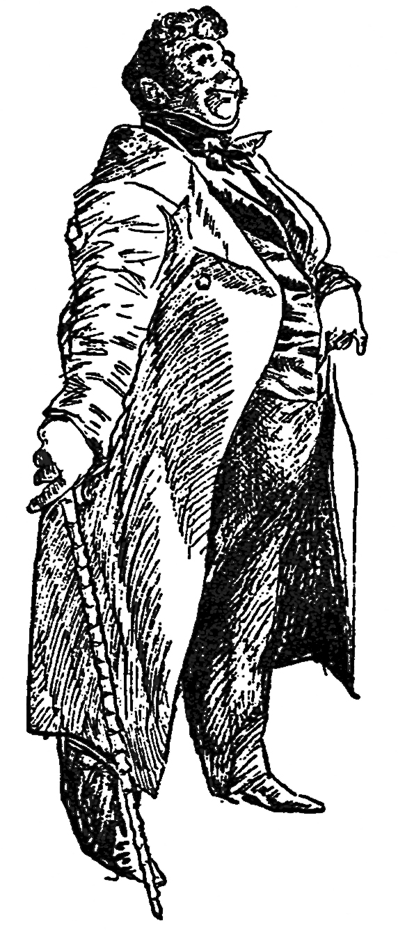 De deur ging open, en er trad een welgedaan heer binnen, die een goede veertig jaar oud mocht zijn. ’s Mans gelaat was juist niet hoog fatsoenlijk, maar de uitdrukking er van bijzonder vrolijk en joviaal. Zijn verbrande kleur verried de warmer luchtstreek. Hij had levendige grijsblauwe ogen en zeer zwarte bakkebaarden. Zijn haar, waarin op de kruin een aanzienlijk hiaat begon te komen, was reeds hier en daar, naar de uitdrukking van Ovidius, met een weinig grijs doorsprenkeld. Hij droeg een groene overrok, die hij ogenblikkelijk losknoopte, en vertoonde zich toen in een zwart pak klederen met een satijn vest, waarover een zware gouden halsketting tot beteugeling van zijn horloge. In de hand hield hij een fraai bamboes met barnstenen knop.