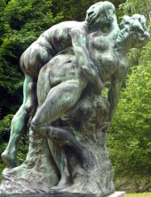 Jef Lambeaux (Antwerpen, 14 januari 1852 – Brussel, 5 juni 1908) was een Belgisch beeldhouwer met een Waalse vader en een Vlaamse moeder. Door die dubbele beïnvloeding voelde hij zich een echte Belg. Hij is ook de broer van de kunstschilder Jules Lambeaux. Hij studeerde aan de Koninklijke Academie voor Schone Kunsten van Antwerpen als leerling van Nicaise De Keyser en Joseph Geefs, maar ze zouden weinig of geen invloed hebben op zijn later werk. Hij sloot zich aan bij een groep jonge kunstenaars, die een beetje berucht was vanwege hun excentriek gedrag. Zo maakte het groepje graag wandelingen in Antwerpen gekleed in historische kostuums. Zijn eerste werk Oorlog werd in 1871 tentoongesteld en werd gevolgd door een lange reeks humoristische, pittoreske groepen. Daarna vertrok hij naar Parijs, waar hij een ellendig leven had. Hier maakte hij echter wel in 1881 De Bedelaar en De Kus, dat wordt beschouwd als zijn meesterwerk. Bij een bezoek aan Italië werd hij geïmponeerd door de beeldhouwwerken van Giambologna (1529-1608), een beeldhouwer van Belgische oorsprong die in Bologna werkzaam was. Onder diens invloed ging Lambeaux steeds meer werken produceren met effecten van kracht en beweging in de menselijke figuur. In 1887 zou hij de Brabofontein (1887) maken voor de Grote Markt in Antwerpen (zie onderaan het artikel), dat onder invloed van de bewegingseffecten van Giambologna is gemaakt. Het beeldt Silvius Brabo uit, de legendarische stichter van Antwerpen, en is inmiddels het officiële symbool van de stad Antwerpen. Op het voetstuk zijn zeemeerminnen, zeerobben en andere zeedieren te zien, uitgebeeld met een soepelheid die reeds art nouveau anticipeert. In 1883 werd hij een der stichtende leden van de kunstenaarskring Les Vingt, maar al een jaar later vertrok hij uit deze groep wegens zijn onvrede met de te avant-gardistische ideeën van de groep. Lambeaux maakte vele werken met een behoorlijke sensuele weergave van het menselijk vlees, wat hem vaak op pittige kritiek kwam te staan en de bijnaam ‘Michelangelo van de goot’ opleverde. Daar staat tegenover dat hij voor zijn werk op een tentoonstelling in Parijs een onderscheiding van het Legioen van Eer kreeg. Zijn werk Triomf van de Vrouw (1901) veroorzaakte op de Wereldtentoonstelling van 1905 in Luik grote commotie vanuit katholieke kringen. Het reusachtige haut-reliëf De menselijke driften (1889-1894), een minutieus uitgewerkte schets tentoongesteld in 1889, getuigt van grote zinnelijkheid en barokke zwier. Het beeld kreeg wel in het begin kritiek omdat het een en al beweging weergaf, maar in feite weinig innerlijk gevoel. Hij vervaardigde ook een groot aantal portretbustes en werken met nimfen, groepen van bosgoden, bacchanten en centauren. Zijn Nimf van de Bocq bleef tot 1976 opgeborgen in de kelders van het stadhuis van Sint-Gillis, omdat het in de negentiende eeuw ‘te indecent’ werd bevonden, maar staat nu triomfantelijk op het plein voor het stadhuis. Ook het werk Gebeten faun dat was besteld voor een plaatsje in her Parc de la Boverie in Luik veroorzaakte een schandaal. Het werd teruggestuurd, maar brak onderweg. De regering zorgde voor een nieuw exemplaar dat nu nog steeds in het park in Luik staat.