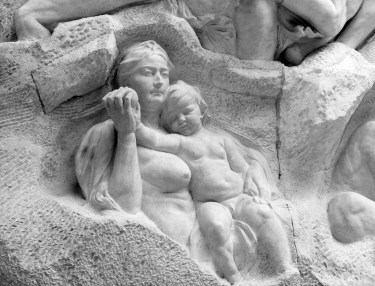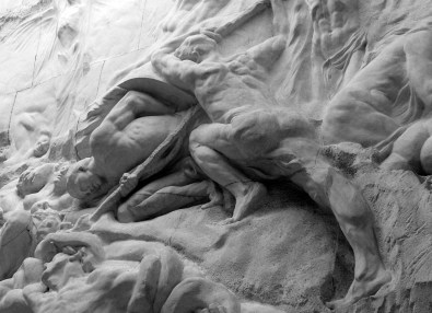 De Belgische beeldhouwer Jef Lambeaux werkte tussen 1886 en 1898 aan een monumentaal werk dat hij De Calvarieberg des Menschdoms wilde noemen, maar bekend zou worden onder de naam De menselijke driften. Het ontwerp was een houtskooltekening op doek op ware grootte, dat eerst werd voorgesteld op het driejaarlijkse Salon van Gent. Het ontwerp veroorzaakte beroering, maar koning Leopold II plaatste in 1889 toch de bestelling bij de kunstenaar. Bedoeling was om het klaar te krijgen voor de Wereldtentoonstelling van 1897. Leopold II belastte zijn hofarchitect Alphonse Balat met het ontwerp, maar deze stelde voor om het over te laten aan zijn stagiair Victor Horta. Voor de uitvoering van het reliëf van acht bij twaalf meter in marmer uit Carrara betaalde hij 136.000 frank. Het is een allegorische voorstelling van alle menselijke gevoelens, emoties en toestanden zoals blijdschap, geluk, verliefdheid, jeugd, ouderdom, moederschap, zonden, kwellingen en andere zielstoestanden van de menselijkheid. Centraal staat de triomftocht van ‘Pietje de dood’ in plaats van een goddelijke macht. De theatrale, neobarokke figuren refereren aan Rubens, Michelangelo en de Hellenistische beeldhouwkunst. In het werk staat niet de goddelijke macht centraal maar de triomftocht van wat in Vlaanderen ‘Pietje is dood’ heet en in Nederland bekend staat als Magere Hein. Deze personificatie van de dood wordt meestal afgebeeld als een levend geraamte in een donker gewaad, met een kap over het hoofd om zijn schedel aan het zicht te onttrekken, en hij heeft een zeis in een benige hand. De zeis symboliseert dat de dood iedereen treft, immers: een zeis maait alle korenhalmen om. Soms staat Magere Hein symbool voor de alles verslindende tijd; dan draagt hij vaak ook een zandloper bij zich. Vooral christelijke bezoekers namen aanstoot aan het tafereel. In katholieke kranten schreef men dat Lambeaux ‘met den vleeschduivel bezield was en dat het Horta-Lambeaux Paviljoen waar het werk was ondergebracht ‘een marmeren bordeel’ was. Horta had oorspronkelijk een open voorzijde gepland. Via een lichtstraat in het dak viel het daglicht van bovenuit op de sculpturen. Dat paviljoen is een klassiek geïnspireerd bouwwerk met vierkantig grondplan, in 1890 ontworpen door de architect Victor Horta en gebouwd in de periode 1891-1899. Zo was het te bezichtigen op de wereldtentoonstelling (sommige delen in gips) en bij de inauguratie op 1 oktober 1899 was het reliëf zichtbaar door de deuropening van de onafgewerkte tempel. Lambeaux wilde een andere belichting en was ook niet tevreden over de open-zuilenconstructie van Horta, waardoor het kunstwerk te zichtbaar was voor voorbijgangers. Hij liet zijn ongenoegen duidelijk blijken, waarna Horta als reactie drie dagen later een houten afsluiting plaatsen achter de zuilen. In 1906 paste hij met tegenzin zijn plan aan: zijn nieuwe ontwerp voorzag in een muur en schoof de zuilen vooruit. Hij wilde niets meer te maken hebben met de uitvoering in 1909-1910. Op het fronton en de vier hoeksokkels moesten bijkomende sculpturen komen, maar die zijn nooit uitgevoerd. De controverse leidde tot een reuk tussen beeldhouwer en architect. Toen Horta in 1910 een gesloten gevel ontwierp met een ijzeren deur die gesloten bleef, was Lambeaux al overleden. Het was de wens van Lambeaux om begraven te worden in het paviljoen met zijn meesterwerk, maar hij kwam met de eenvoudige steen die hij had voorzien terecht op de begraafplaats van Sint-Gillis te Ukkel.