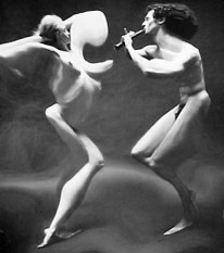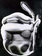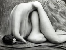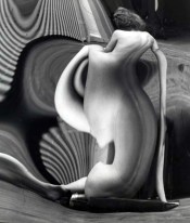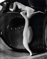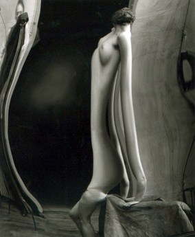 André Kertész (Boedapest, 2 juli 1894 – New York, 28 september 1985) maakte in 1933 het fotoboek Distortion, waarvoor veel ophef ontstond. André Kertész was altijd al geïnteresseerd geweest in de mogelijkheden binnen de fotografie van spiegels, reflecties en vervormingen, maar pas in 1933 ging hij serieus kijken wat de mogelijkheden waren toen het blad Le Sourire hem benaderde met het verzoek een serie foto’s te maken. Le Sourire was een Frans geïllustreerd tijdschrift dat werd uitgegeven tussen 1899 en 1940. Het was een van de vele luchtige en enorm populaire Parijse tijdschriften met tekeningen van semi-geklede demoiselles, evenals verhalen en grappen van soortgelijke aard. In wezen heel onschuldig, maar in het buitenland hadden ze in die periode een bedenkelijke reputatie. Vooral Britten en Amerikanen vreesden dat dit soort publicaties tot een morele vernieling zouden leiden en waarschuwden tegen hun verschijning. In het Parijse amusementspark Luna Parc ontdekte hij de lachspiegel en Kertész, die nog niet eerder naaktfoto’s had gemaakt, ging hiermee aan de slag om te experimenteren. In vier weken tijd maakte hij ongeveer tweehonderd kunstzinnige naaktfoto’s van twee Russische modellen Najinskaja Verakatsj en Nadia Kasine. Het was een bijzondere serie foto’s van vrouwelijke naakten, gedeformeerd door lachspiegels, die onder invloed van de vernieuwingen van het surrealisme tot stand kwam. Een daarvan was nevenstaande foto, die al direct associaties opriep met het beroemde schilderij De Schreeuw (1893) van de Noorse schilder Edward Munch. Het boekte Distortion veroorzaakte veel ophef, maar ook veel waardering. Een criticus beschreef Distortions als ‘…. een briljant onderzoek naar stijlmiddelen met een originaliteit die schuilt in de interpretatie van een klassiek onderwerp: het vrouwelijk naakt in combinatie met de moderne fotografie’ en merkte op dat de ‘anamorphoses’ een dialoog aangaan met de weelderige vrouwenbeelden van Picasso, Arp en Moore. Distortions was wel een uitzondering binnen het oeuvre van Kertész. In tegenstelling tot Man Ray en Raoul Ubac onderzoekt hij het surrealisme niet verder, maar ontwikkelt Kertész zijn eigen stijl van fotografie van het gewone straatleven, die hem veel internationale waardering opleverde.