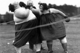 Bij de weinige vrouwelijke boxers rond 1900 kan men bij een enkeling (Hattie Stewart) aan de kleding zien dat die serieus met boksen bezig was, maar bij anderen (Hattie Madden) met haar kolderieke kledij is het overduidelijk dat het op zijn best een goede vaudeville-act of circusnummer was en op zijn slechts plat vermaak in de categorie ‘rariteitenkabinet’. Zie bijvoorbeeld de outfit waarmee de Carlson Sisters optraden. Het is schier onmogelijk voor te stellen dat deze zwaarlijvige zusjes in deze pakjes die maar beperkte bewegingsvrijheid gaven een overtuigende sportieve prestatie op de mat lieten zien. Dat gold natuurlijk ook voor de Gordon Sisters, twee boksende keukenmeiden. Trouwens, ook al een opvallend gegeven … vaak werd opgetreden in ‘sister-verband’, waarbij het niet altijd duidelijk was of het daadwerkelijk zussen waren. Dat de dames blijkbaar altijd tegen elkaar uitkwamen, geeft al aan dat het vaudeville moet zijn geweest. Nog zo’n act vormden de Bennett Sisters, die niet alleen aan boksen maar ook aan worstelen deden. In hun voordeel moet worden gezegd dat ze het figuur en de kleding van een echte sportvrouw hadden. Dat gold ook voor een ander duo, Fraulein Kussin and Mrs. Rose Edwards. Van de laatste is bekend dat ze de echtgenote was van de beroepsbokser Joe Edwards. Er mag dus worden verondersteld dat hun partij technisch van een redelijk niveau was. Beiden dames kwamen op 7 maart 1912 in een officiële wedstrijd tegen elkaar uit; de uiteindelijke uitslag is niet bekend. Een dag voor het duel werden enkele persfoto’s gemaakt.