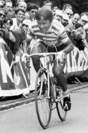 Een mooie foto van de foto van de top 5 van de Ronde van Lombardije op 9 oktober 1976. De wedstrijd over 253 kilometer tussen Milaan en Como eindigde in een overwinning voor de Belg Roger de Vlaeminck. De andere vier renners zijn Bernard Thévenet (2e), Raymond Poulidor (5e, grotendeels verscholen achter de brede rug van zijn landgenoot, Joop Zoetemelk (4e) en de Italiaan Wladimiro Panizza (3e). Wonderbaarlijke genoeg doet de naam geen belletje rinkelen. Wladimiro Panizza (Fagnano Olona, 5 juni 1945 – Cassano Magnago, 21 juni 2002) stond echter in de periode 1967-1985 maar liefst achttien keer aan de start van de Ronde van Italië, reed deze zestien keer uit en eindigde elf keer in de top vijftien. Hoogtepunt was de tweede plaats in 1980 op 35-jarige leeftijd achter Bernard Hinault. Hij had twee ritoverwinningen in de Giro. Ook in de Tour de France had hij één overwinning in zijn vier deelnames, die hij respectievelijk als 14e, (1969), 18e (1970), 4e (1974) en 13e (1976) beëindigde. Hij won op 11 juli 1976 de 15e etappe, Saint-Lary – Pau. Hij reed ook achttien keer Milaan-San Remo, met een opvallende tweede plaats in 1976, toen Eddy Merckx zijn zevende en laatste overwinning behaalde in de Primavera. Wladimiro Panizza won 28 seconden later de sprint van Jean-Luc Vandenbroucke, die na afloop op doping werd betrapt en uit de uitslag werd geschrapt. In alle overige deelnames aan de eerste voorjaarsklassieker kon Panizza geen potten breken.