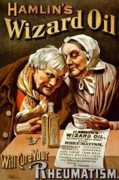 Een van de wonderelixers was Hamlin’s Wizard Oil (Hamlin’s tovenaarsolie), dat werd verkocht onder de slogan: ‘Er is geen pijn die niet zal genezen, geen pijn die niet zal worden onderdrukt.’ Het werd voor het eerst geproduceerd in 1861 in Chicago door voormalig goochelaar John Austin Hamlin (1837-1908) en zijn broer Lysander Butler Hamlin. Het middel werd vooral verkocht en gebruikt als smeersel voor reumatische pijn en pijnlijke spieren, maar er werd geadverteerd dat het een prima middel was voor de behandeling voor longontsteking, kanker, difterie, oorpijn, kiespijn, hoofdpijn en hondsdolheid. De wonderbaarlijke tovenaarsolie bevatte 50-70% alcohol en daarnaast kamfer, ammoniak,