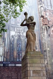 We treden langs de beeltenissen onzer doden. Gesprekken, ze zwijgen; de twisten zijn stil. We beloven hun, we bidden: Maak ons hunner gedachtig! 0 God, maak ons getrouw aan het land en het volk, dat Gij ons hebt gegeven!
