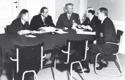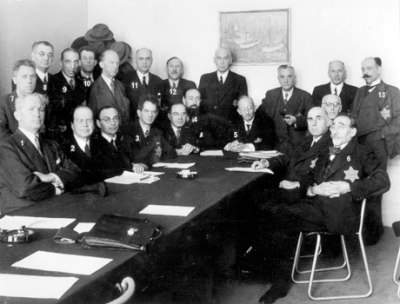 Voorste rij: A. Asscher (voorzitter), D. Cohen (voorzitter), A. de Hoop (voorzitter Nederlandse Bioscoopbond, directeur Tuschinsky), H. Voet (voorzitter van de Algemene Nederlandse Diamantwerkersbond), A. van den Bergh (notaris), Ph. Frank (opperrabbijn, vertegenwoordiger provincie Noord-Holland), D. Sluijs (secretaris Joodse Gemeente), mr. S. van Lier (gemeentesecretaris Amsterdam), A. Gomperts (advocaat), A. Mendes da Costa (secretaris Portugees-Israelitisch Gemeente).Achterste rij: Meijer de Vries (algemeen adviseur), A. van de Laan (algemeen secretaris), J. Brandon (secretaris), onbekend, onbekend, A. Soep (diamantair), J. Arons (arts), J. Brahn (voorzitter Beirat voor niet-Nederlandse Joden), A. Kouwer (accountant), I. de Haan (onbekend), prof. Dr. L. Palach (hoogleraar Universiteit Amsterdam).