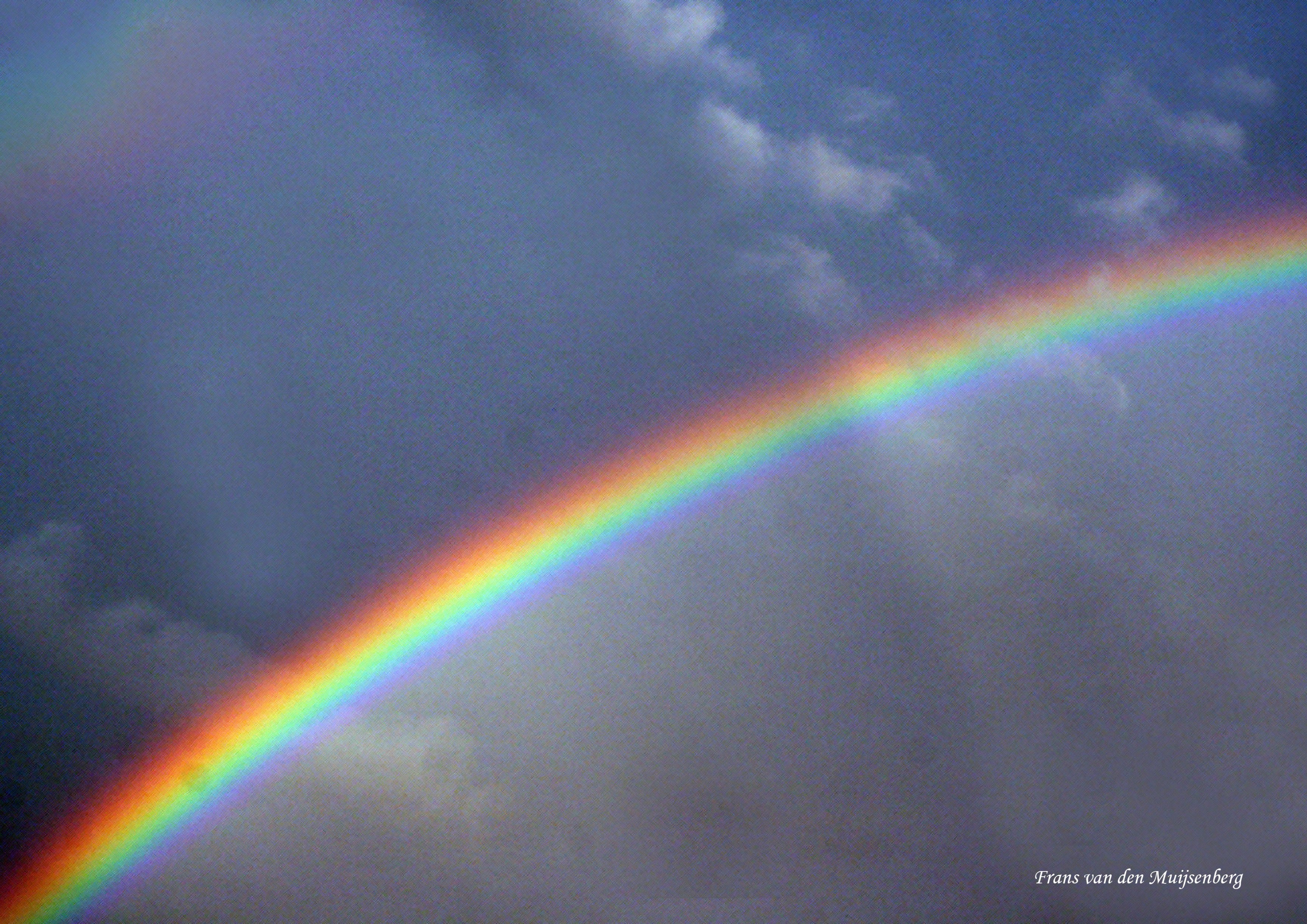 Regenboog boven Lobith op een zomerse avond, augustus 2011, © Frans van den Muijsenberg.