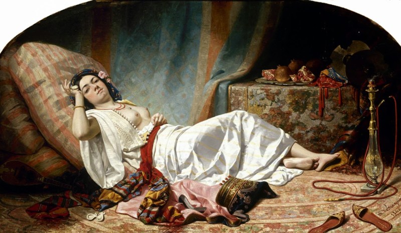 Armand-Gabriel-Auguste-Claire de FRAGUIER (Besançon, 18 november 1803 – Besançon, 31 juli 1873) is een tamelijk obscuur schilder, die het grootste deel van zijn leven heeft doorgebracht in zijn geboortestad. Van hem zijn slechts een paar schilderijen bewaard gebleven, die behoorlijk goed laten zien waarom hij zo obscuur bleef. Hij was in zijn geboortestad een leerling van de romantische schilder Camille Joseph Etienne Roqueplan (Mallemort, 18 februari 1802/03, Mallemort – Parijs, 29 september 1855), die grote vermaardheid had schilder van landschappen, genrestukken en schilder van historische werken. De Fraguier was jarenlang president van de Société des amis des arts de Besançon, dat enkele werken van hem in bezit heeft. In de periode 1843-1859 heeft hij deelgenomen aan verschillende salons in Parijs. Zijn belangrijkste is zijn Odalisque au nargile uit 1846, ofwel de odalisk met de waterpijp. Hij heeft nog een andere odalisk geschilderd, misschien wel een voorstudie voor dit schilderij. Het originele schilderij is aanzienlijk minder fleurig dan de bijgewerkte afbeelding van het schilderij dat op internet rondgaat.
