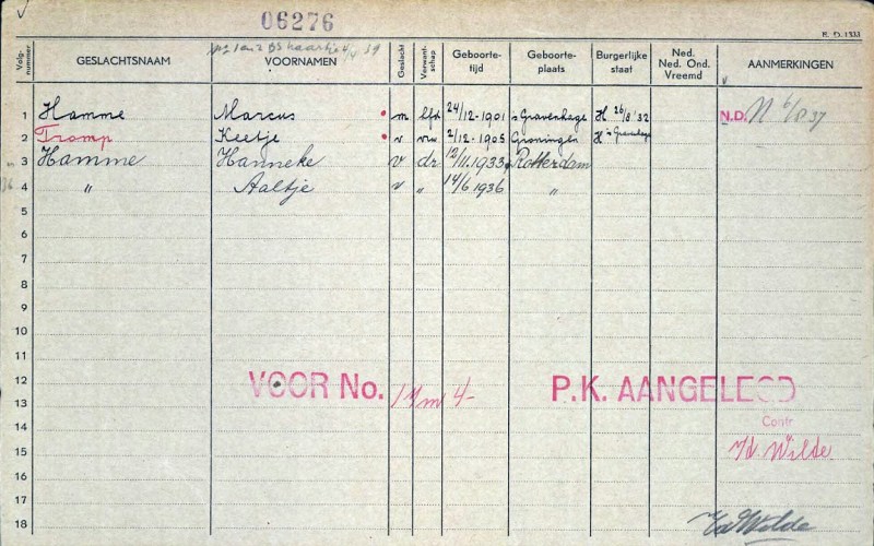 Ook het gezin van Marcus Hamme diende zich in Amsterdam te melden in de Hollandsche Schouwburg.
