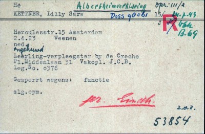 Lilly kreeg een oproep voor deportatie naar Westerbork, maar kan in eerste instantie via Erika Blüth, die werkte voor de Joodse Raad van Amsterdam, op 8 juli 1942 een vrijstelling van deportatie krijgen vanwege haar rol in het kinderdagverblijf. Via haar ouders in Palestina had de twintigjarige Lily Kettner al een certificaat, de zogenaamde Arbeitsheimverklaring, en werd ze op een lijst gezet die bestemd was voor uitwisseling met Duitse burgers. Op zondag 20 juni 1943 was er al een grote razzia geweest in Amsterdam, waarbij 5.542 Joden werden opgepakt en naar Westerbork werden overgebracht. Een voorbode wat er allemaal te wachten stond. Op 14 juli 1943 was er een Duitse inval in het kinderdagverblijf, waarna alle bewoners van het kindertehuis naar kamp Westerbork werden gedeporteerd. Ook Lilly Kettner werd naar kamp Westerbork gestuurd, waar Rolf Rosenthal (Berlijn, 3 januari 1915 – Auschwitz, 9 april 1945), een van de Loosdrechtse chalutzim, zorgt ervoor dat ze in Barak 69 wordt geplaatst. Ze reisde toen dagelijks met een groep per trein via Assen naar Meppel om in een jamfabriek te werken, later in een wasserij. In september 1943 slaagde Lilly erin contact te leggen met Mirjam Waterman (Loosdrecht, 5 december 1916 – Haifa, 16 februari 2011), de latere echtgenote van Menachem Pinkhoff, die ervoor zorgde dat ze onder de naam Aafje van Hoving kon ontsnappen naar Hilversum.