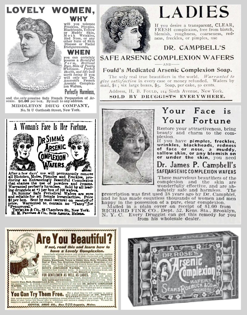De producten van meneer Campbell (als pil of als zeep) sloegen blijkbaar aan. Binnen de kortste keren werden gelijksoortige Arsenic Complexion Wafers op de markt gebracht onder de namen Dr. Simms, Dr. Rose en Dr. MacKenzie (de Britse versie), die allemaal hun potentiële vrouwelijke clientèle benaderden met de slogan ‘your face is your fortune’. Het sloeg aan. Vrouwen knabbelden aan de hosties of wasten zich de arseen bevattende zeep, in de hoop een ideale teint te bereiken zonder een of andere ‘gezichtsmisvorming’. Ze wisten niet dat het arseen levensgevaarlijk kon zijn. Ironisch genoeg zou blootstelling aan arseen niet alleen de hyperpigmentatie na verloop van tijd verergeren, maar kon het ook leiden tot het ontstaan van donkere vlekken op de handen en voeten. De ‘wafers’ maakte hun huis modieus bleek door de rode bloedcellen te vernietigen, maar natuurlijk liep het cosmetische gebruik van de stof niet altijd goed afliep. Niet iedereen hield zich aan het voorgeschreven beperkte gebruik.