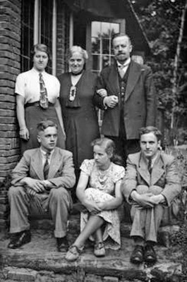 Het gezin Ten Boom in 1938, boven Corrie en beide ouders; onder Kik, Betsie en een tweede zoon.