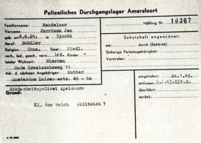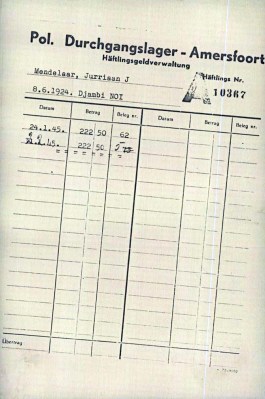 Na zijn arrestatie kwam Jurriaan op 24 januari 1945 als Häflingsnr A 10367 terecht in Kamp Amersfoort. De voorgaande maand had hij vastgezeten in de Willem III-kazerne in Apeldoorn, die toen de kazerne voor de Wehrmacht was. Opnieuw had hij een aardig bedrag op zak, fl. 222,50 (€ 1.600,-) dit keer. Het doet vermoeden dat hij voor het verzet enige koeriersdiensten deed. Op zijn inschrijvingskaart staat dat hij woonachtig was aan de Oude Ermeloscheweg 11 in Hierden (bij Harderwijk) en dat zijn moeder, woonachtig aan De Lairessestraat in Amsterdam, zijn contactpersoon was. De vader was blijkbaar helemaal uit beeld. Van hieruit werd hij op 2 februari 1945 op transport gezet naar het concentratiekamp Neuengamme. Van daaruit werd hij overgebracht naar het buitenkamp Misburg, waar van 26 juni 1944 tot 8 april 1945 zo’n 1.000 tot 1.200 mensen (veelal Fransen, Polen, Russen en een enkele Nederlander) als dwangarbeider tewerkgesteld waren in een olieraffinaderij. Op 15 april 1945 kwam Jurriaan terecht in blok 13 van concentratiekamp Bergen-Belsen.