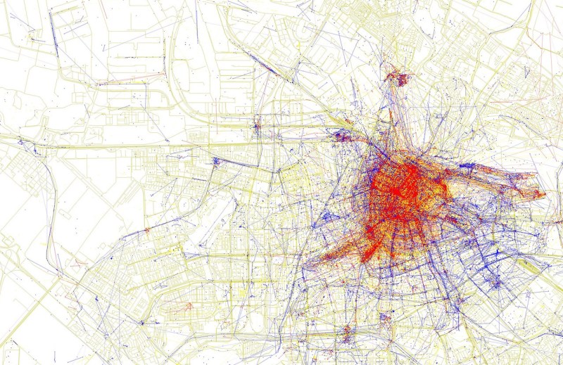 Het interessante onderwerp betrof Tourists Vs Locals: 20 Cities Based On Where People Take Photos met 136 plattegronden waar toeristen en de lokale bevolking in een bepaalde stad foto’s nemen. Toeristen en inwoners beleven hun steden namelijk op opvallend verschillende manieren. De toeristen bezoeken vooral dat gedeelte dat bekend staat om ‘de toeristische attracties. Die worden niet voor niets zo genoemd. Daarbuiten zullen ze zich maar zelden vertonen. De lokale bevolking kunnen jarenlang deze toeristische trekpleisters in het centrum van de stad amper bezoeken. Om te zien hoe verschillend deze twee werelden zijn, maakte Eric Fischer van 136 grote steden dus plattegronden, gebaseerd op de plekken waar mensen foto’s nemen. De rode gedeelten geven foto’s aan die door toeristen zijn gemaakt, de blauwe gedeelten foto’s die door de lokale bevolking zijn gemaakt en de gele gedeelten kunnen van beide zijn. Hij maakte de plattegronden op basis van gegevens uit 2010-2013 en kunnen dus wat verouderd zijn, maar voor de meeste steden veranderen populaire toeristische bestemmingen weinig van jaar tot jaar, dus de plattegronden zullen nog behoorlijk actueel zijn.