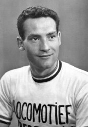Sylvère Jézo (Moustoir-Ac, Morbihan, 10 juli 1913 – Vannes, Morbihan, 19 januari 1976) was een Bretons wielrenner, geboren in een heuvelachtige streek vol rotsachtige heuvels, doorsneden met beekjes en bezaaid met vele megalieten als bewijs van een menselijke aanwezigheid sinds de prehistorie. Een streek die veel renners met klimcapaciteiten heeft voorgebracht, maar Jézo hoorde zeker niet tot de gezelschap. Hij was profwielrenner van 1937 tot en met 1946, steeds bij de Franse ploeg Dilecta-Wolber, maar in die tien jaar behaalde hij slechts één zege en deed hij nooit mee aan de drie grote ronden of de erkende klassiekers. De wielerploeg Dilecta-Wolber reed vanaf 1922 in een blauw-gouden trui mee aan alle koersen. Dilecta was een constructeur van bedrijfsfietsen, die in 1937 het bekende merk JB Louvet opkocht. In de loop der decennia boekte de renners van het team vele successen, maar in de Tour de France droegen ze de truien van nationale of regionale teams. Zo won Gerrit Schulte, die met uitzondering van de oorlogsjaren vanaf 1937 tot 1949 onafgebroken voor Dilecta-Wolter reed en dus ploeggenoot was van Jézo, in 1938 een etappe in de Tour de France. In 1955 hield de ploeg op te bestaan. Toen was Sylvère Jézo inmiddels met wielerpensioen. (meer…)