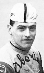 Sylvère Jézo (Moustoir-Ac, Morbihan, 10 juli 1913 – Vannes, Morbihan, 19 januari 1976) was een Bretons wielrenner, geboren in een heuvelachtige streek vol rotsachtige heuvels, doorsneden met beekjes en bezaaid met vele megalieten als bewijs van een menselijke aanwezigheid sinds de prehistorie. Een streek die veel renners met klimcapaciteiten heeft voorgebracht, maar Jézo hoorde zeker niet tot de gezelschap. Hij was profwielrenner van 1937 tot en met 1946, steeds bij de Franse ploeg Dilecta-Wolber, maar in die tien jaar behaalde hij slechts één zege en deed hij nooit mee aan de drie grote ronden of de erkende klassiekers. De wielerploeg Dilecta-Wolber reed vanaf 1922 in een blauw-gouden trui mee aan alle koersen. Dilecta was een constructeur van bedrijfsfietsen, die in 1937 het bekende merk JB Louvet opkocht. In de loop der decennia boekte de renners van het team vele successen, maar in de Tour de France droegen ze de truien van nationale of regionale teams. Zo won Gerrit Schulte, die met uitzondering van de oorlogsjaren vanaf 1937 tot 1949 onafgebroken voor Dilecta-Wolter reed en dus ploeggenoot was van Jézo, in 1938 een etappe in de Tour de France. In 1955 hield de ploeg op te bestaan. Toen was Sylvère Jézo inmiddels met wielerpensioen. (meer…)